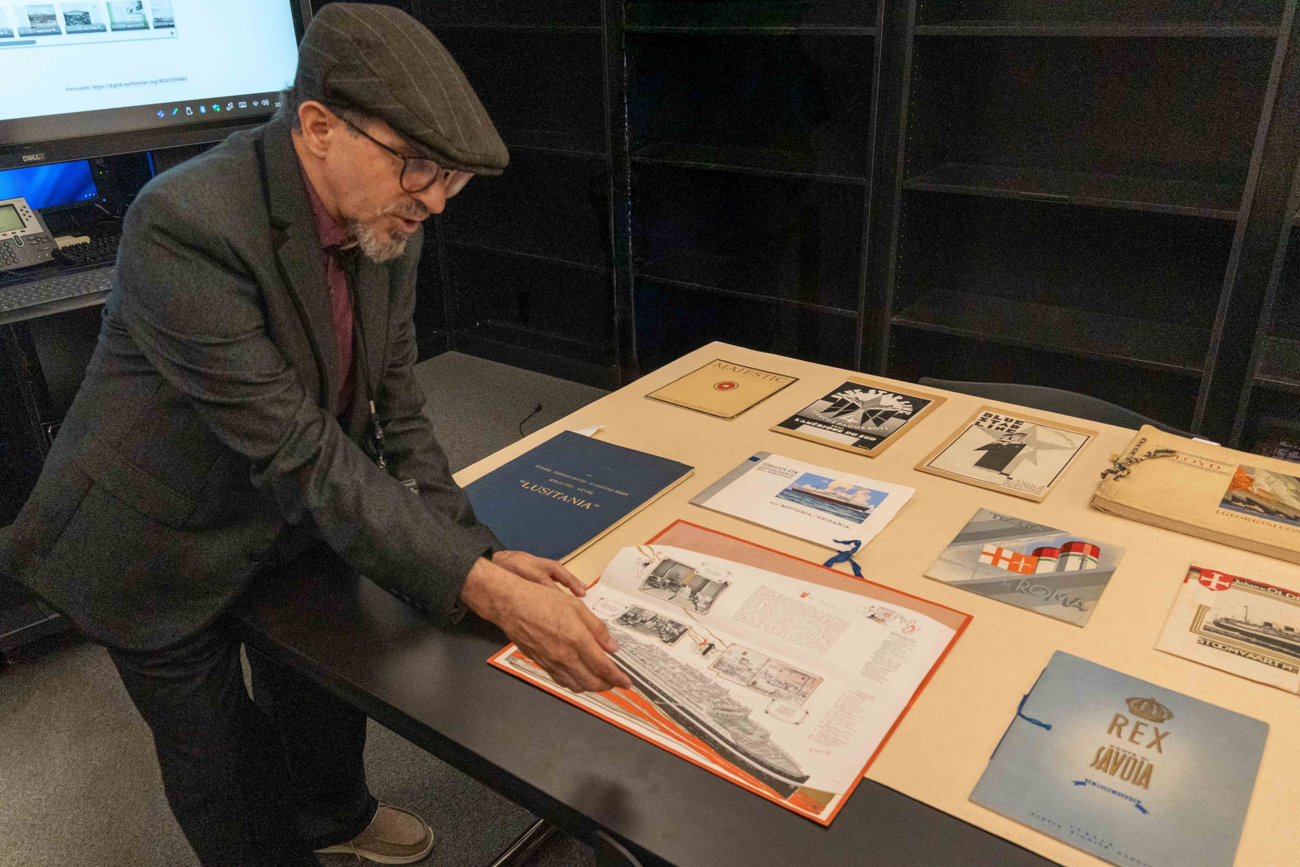 Wolfsonian Chief Librarian Frank Luca explaining one of the items on exhibit.