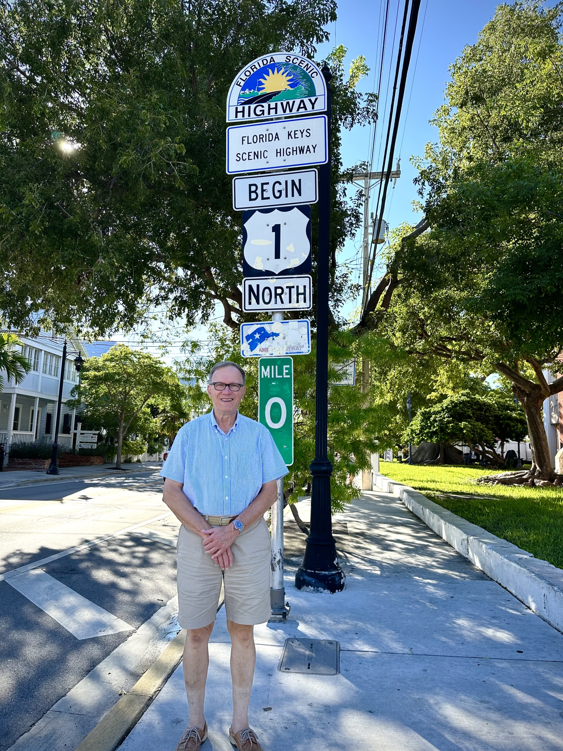 PONY Branch member Mark Nemergut at the U.S. Route 1 Milepost 0 sign in Key West, FL.