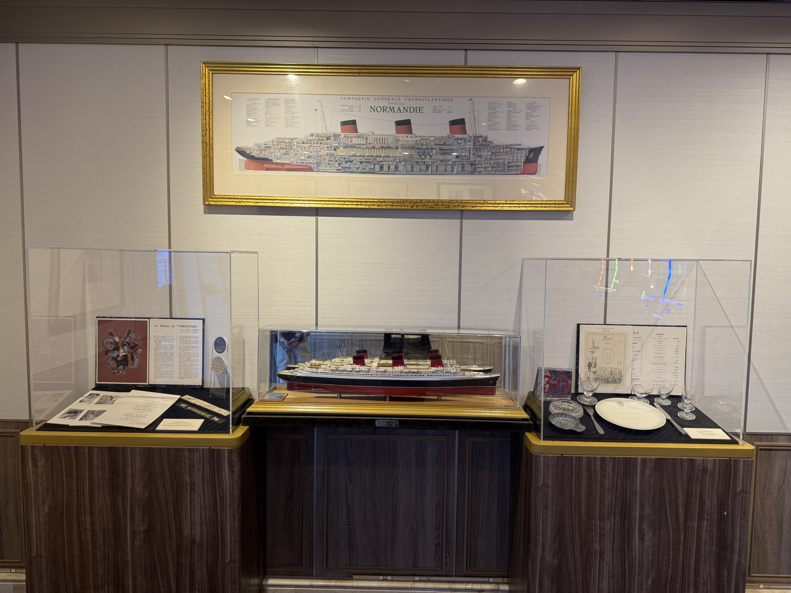 Memorabilia from the SS NORMANDIE on display in CELEBRITY SUMMIT.