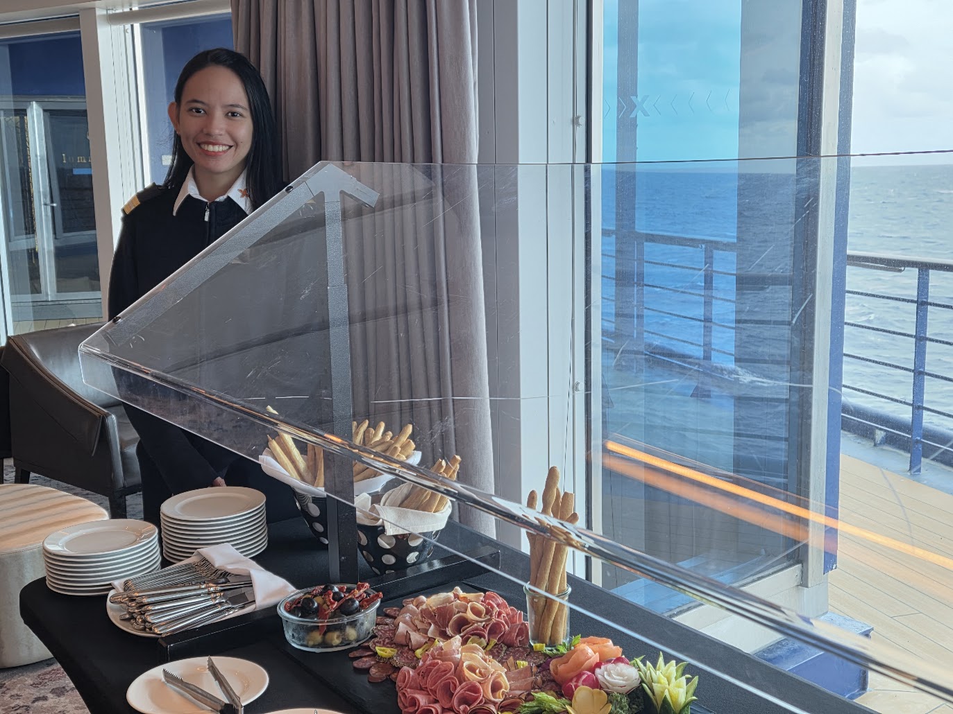 Our Celebrity Group Concierge, Jana, welcoming us during the first of two private receptions while onboard the CELEBRITY SUMMIT. Jana took excellent care of our group during all of our onboard events.